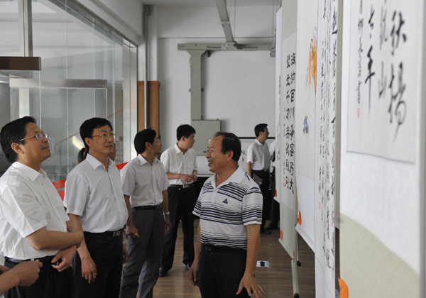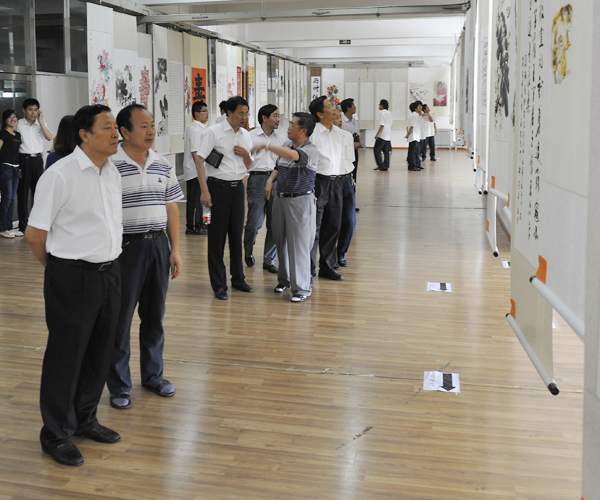 为庆祝中国共产党成立九十周年,6月29日下午,由离退休工作处、校工会、校团委、附属医院、成教学院主办、校老年书法协会承办的“庆祝中国共产党成立90周年大型书画展”在大学生活动中心举行,校领导袁俊平、王滨、李文喜、李一鸣、马爱武、张宗伟及广大师生员工观看了展览。