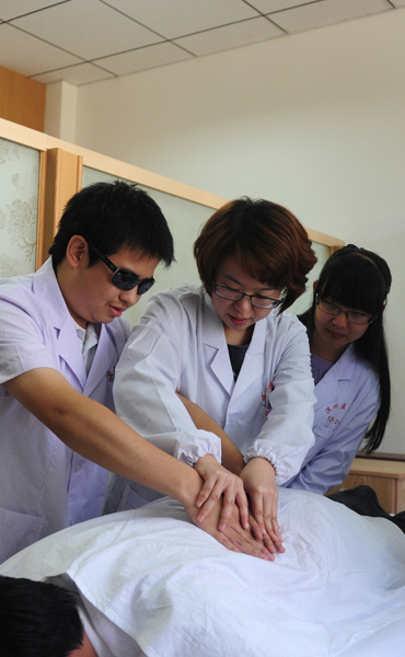 中心人员全部由特殊教育学院的专职教师和视障学生组成,充分利用我校在今年7月份获批的“国家级盲人医疗按摩实训基地”的设施资源,提供全身推拿、局部保健、肩颈理疗、火罐刮痧等健康服务项目。