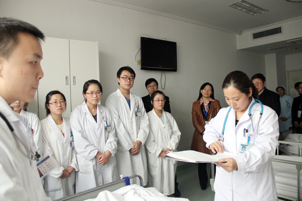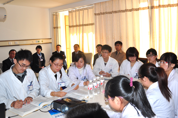 专家组考察了临床技能中心、科教科、内科、外科、儿科、妇科等教研室,查看了电子阅览室、内外科技能室,观摩了心内二科、神经外科的教学查房和消化内科、肝胆外科的一体化教学,查阅了相关材料,考察了鲸园社区卫生服务中心。