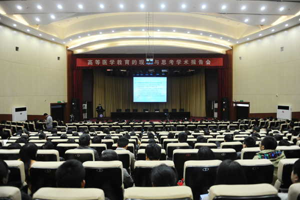 11月7日下午14:00,首都医科大学校长吕兆丰教授应邀作题为“中国高等医学教育的现状与思考”的专题报告。院长王滨主持报告会,党委副书记李文喜、副院长张培功出席报告会。全校科级以上干部、教师代表听取了报告。