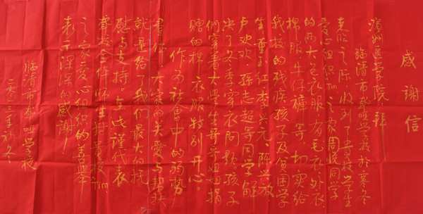 这是我校近日收到临清市聋哑学校致信感谢社团“Tim之家”开展助残帮困送温暖活动。