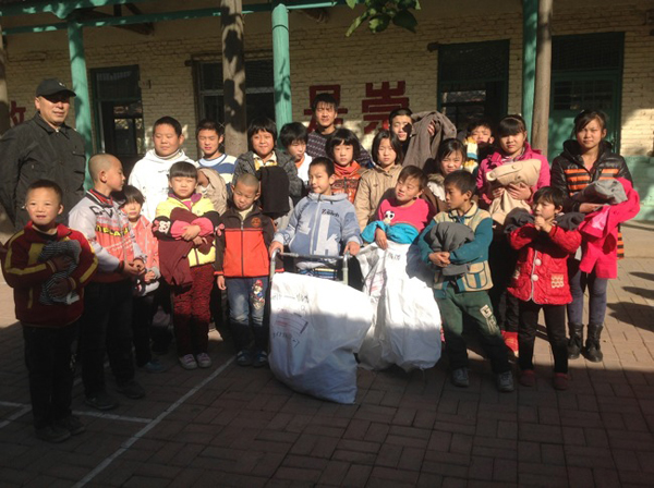 “临清市聋哑学校于寒冬来临之际,收到了贵校学生爱心组织Tim之家周悦同学的两大包衣服,有毛衣、外衣、棉服、牛仔裤等,切实给我校的残疾孩子及贫困学生董玉红、李兴元、陈兴放、卢欢欢、孙志超等同学解决了冬季穿衣问题,孩子们穿着大学生哥哥姐姐捐赠的棉衣服特别开心。作为社会中的弱势群体,大家的关爱与帮扶就是给了我们最大的抚慰与支持。在此谨代表聋校全体师生对贵校“Tim”之家爱心组织的善举表示深深的感谢!”