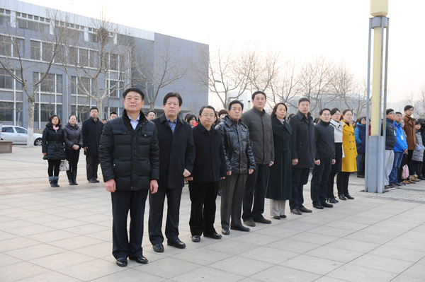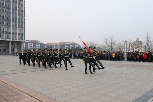 晨曦微露,春寒料峭。3月3日,新学期开学第一天,学校在图书办公综合楼北广场隆重举行升国旗仪式,迎接新学期到来。副院长李克祥与在校师生一起参加了升旗仪式。