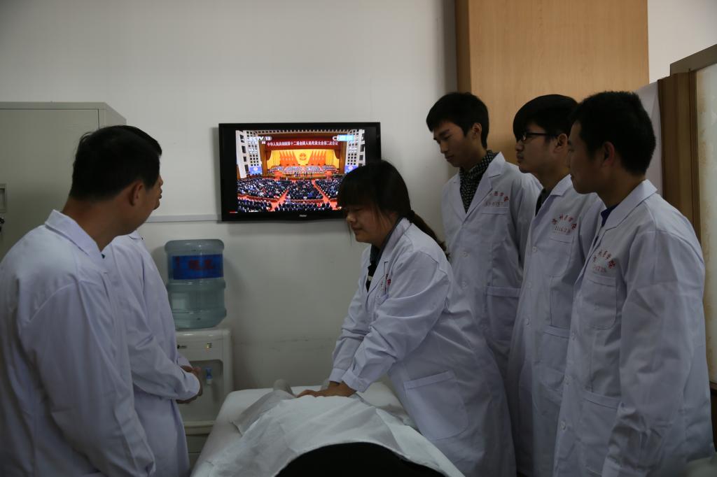 在盲人医疗按摩实训中心,2013级视障学生熊春云等人一边做推拿练习,一边听李克强总理作政府工作报告网络实况转播。熊春云希望能够听到有关残疾人教育和就业的话题。