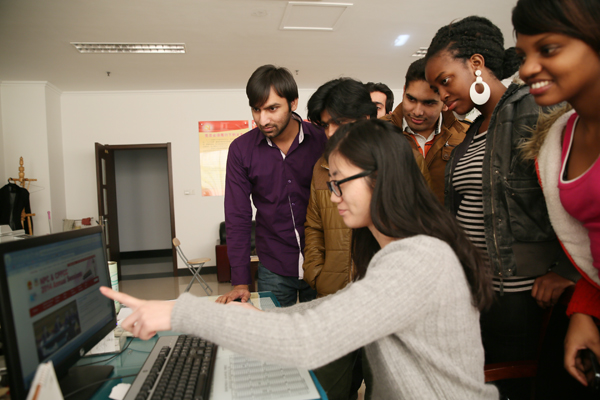 “This is President Xi Jinping!”外国语与国际交流学院张潇丹指着网站上一张习近平总书记的照片,向我校巴基斯坦、非洲留学生介绍我国两会的流程及主要议题。张潇丹说,虽然他们来自不同的国家,但作为老师有义务向这些留学生介绍我国的政治制度和政策,促进他们今后进一步的学习、了解中国的文化。