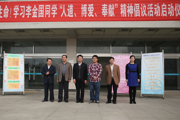 启动仪式上,工作人员宣读了学习李金国同学“人道、博爱、奉献”精神的倡议书。刚从济南省立医院捐献完造血干细胞的李金国与师生们交流了骨髓捐献的亲身经历与心得体会,并呼吁广大青年学子加入到这一爱心行动中,弘扬“奉献、友爱、互助、进步”的志愿者精神。师生们拿起手中的笔在爱心条幅上签名,纷纷表示,要学习李金国同学的“人道、博爱、奉献”精神,用自己的实际行动践行“健康所系、性命相托”的医学生誓言,践行“仁心妙术”的校训精神。