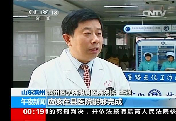 4月8日晚,中央电视台新闻频道在《午夜新闻》栏目中以“县级医院改革试点评估报告:医疗服务水平整体得到提升”为题报道了滨州附属医院帮扶垦利县人民医院等基层医院的工作。