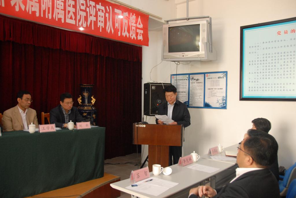 李克祥代表学校向省卫计委及专家组对我校临床教学基地的检查和指导表示热烈欢迎,对地方政府和各级卫生局的大力支持,以及医院领导给予临床教学工作的高度重视和全体医护员工付出的辛勤劳动表示衷心感谢。他表示学校将进一步加强对临床教学基地的支持力度,加大对临床教学的管理与指导。他希望医院,以此次评审为契机认真梳理专家组提出的意见和建议,加大整改力度,进一步规范临床教学,加强教学条件及师资队伍建设,推动医院教学工作和人才培养质量再上新水平。
