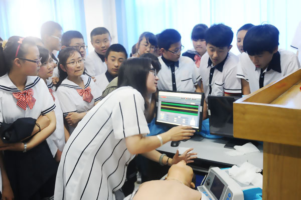 活动过程中,我校组织解剖学陈列室、形态学大体标本展室、中药标本室、外科学实验室等四个实验科室专门专业人员对广大师生进行医学生物及生理知识的讲解,并安排了专门的外科急救实验体验,帮助同学们了解医学常识和一些基本的急救知识,让同学们对人体生命的原理和医院救治流程与方式有个基本的了解。