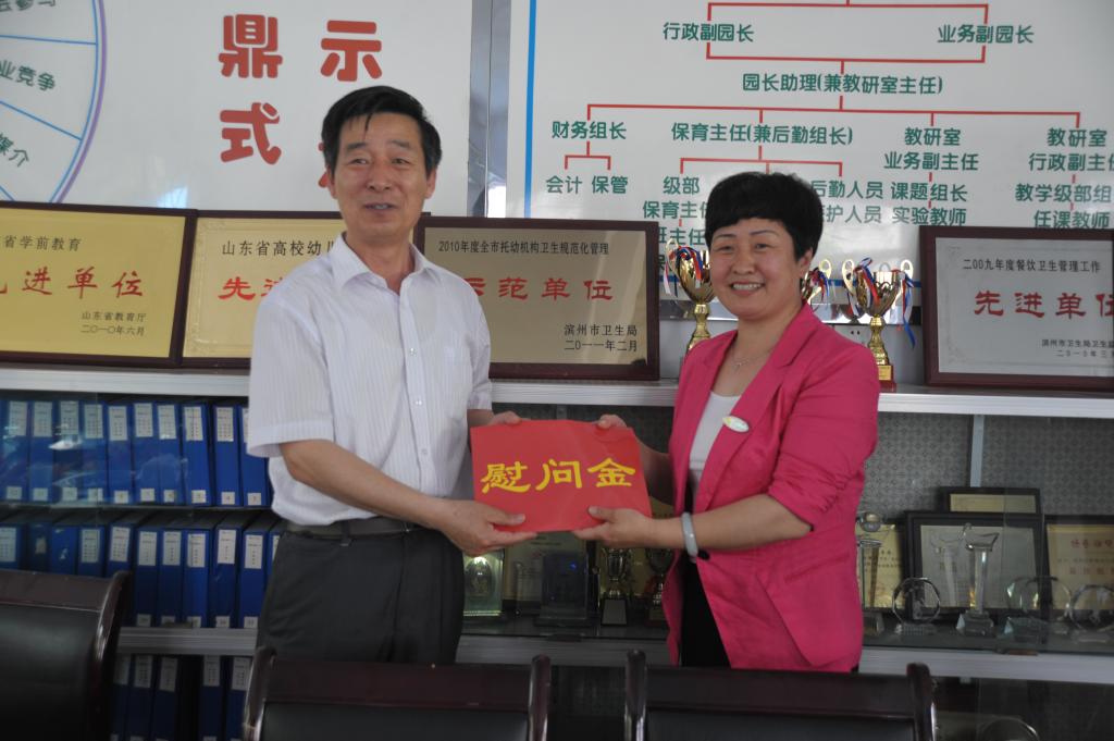 鲜花朵朵映笑脸,喜气洋洋迎六一。5月30日上午,副院长马爱武来到滨医幼儿园,亲切看望这里的孩子们,为他们送上节日祝福并向辛勤的园丁表示亲切的慰问。