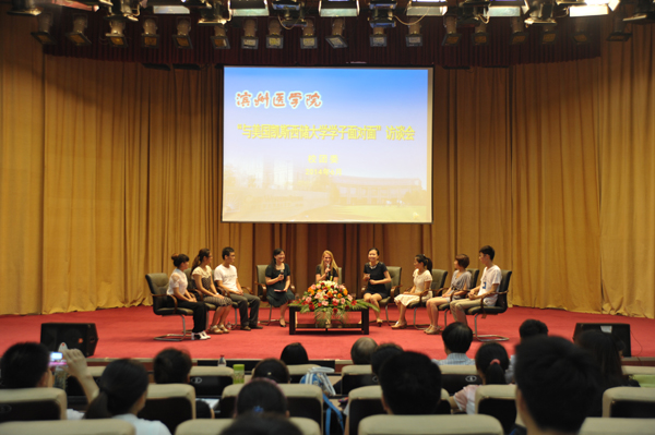 6月16日下午,滨州校区学术报告厅座无虚席,掌声雷动,滨医大讲堂之“与名校优秀学子面对面”访谈会在这里举行。美国凯斯西储大学医学院优秀学子Madeleine Perkins Strohl应校邀与我校500余名大学生进行了面对面的愉快交流。副院长李克祥,美国胸科学会(ATS)呼吸神经及睡眠学组的创始人及领导者、睡眠与呼吸杂志的主编、Madeleine的父亲Kingman P. Strohl出席访谈会。访谈会由校团委副书记崔保华主持。