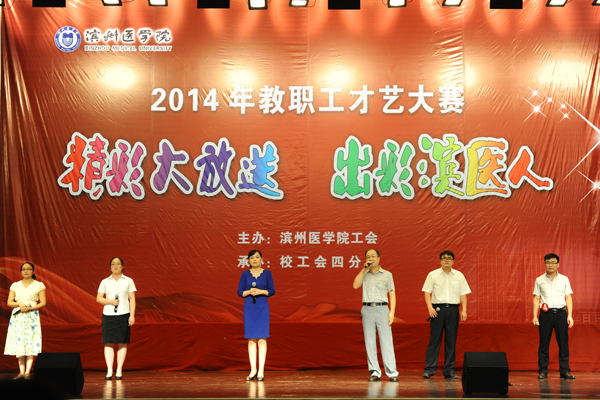 6月27日,学校在大学生活动中心举办2014年“精彩大放送,出彩滨医人”教职工才艺大赛,展示广大教职工的奋发向上的精神风貌和多才多艺的风姿风采,向党的93岁华诞献礼。校党委副书记李文喜,有关部门、单位、院系负责同志与广大师生共同观看了比赛并为获奖选手颁奖。