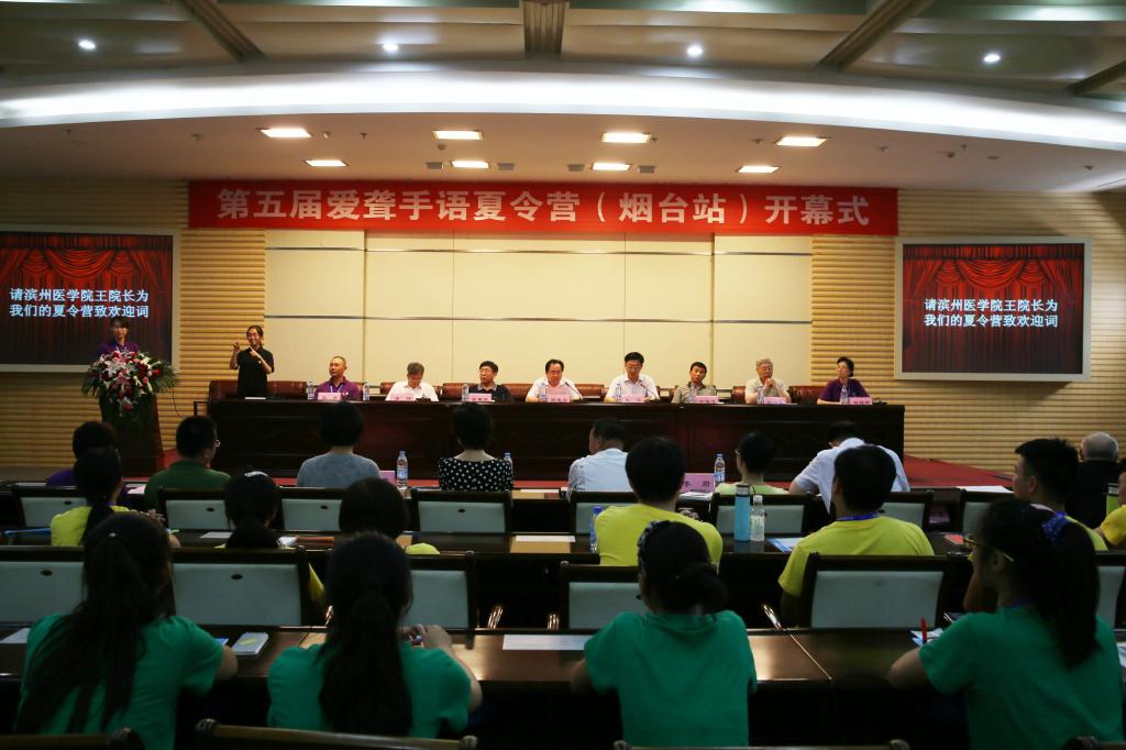 7月22日下午14时,山东省第五届爱聋手语夏令营活动在学校报告厅开幕。院长王滨致欢迎辞。山东省社科联副主席周忠高讲话。烟台市宣传部副部长张革非,烟台市社科联副主席余进河,烟台市残联副理事长于坤,中国高等教育学会特殊教育研究会分会学术顾问张宁生,山东省爱聋手语研究中心主任林勉君,第五届爱聋手语夏令营总策划宋磊出席开幕式并在主席台就坐。