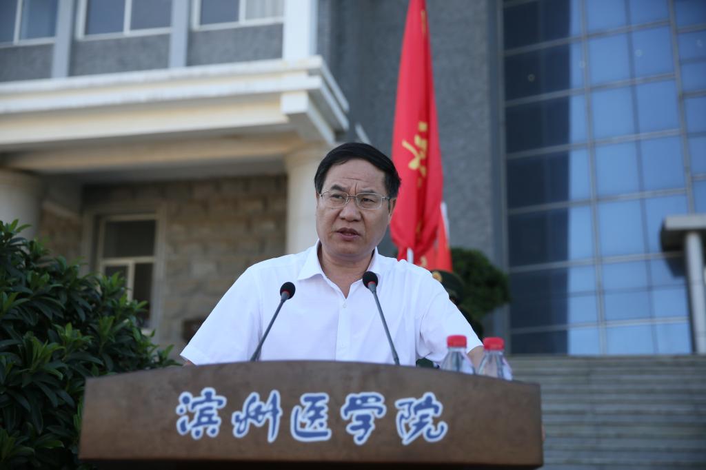 李文喜首先代表学校向一直以来大力支持我校军训工作的烟台警备区某部队和全体教官表示崇高的敬意和诚挚的感谢。李文喜指出,开展大学生军训,是落实党中央、中央军委提出的开展全民国防教育的一种有效形式,是国家长期国防战略任务,是全面贯彻党的教育方针,贯彻国防教育法、兵役法,推进素质教育的重要举措,是同学们进入大学后的第一堂必修课。