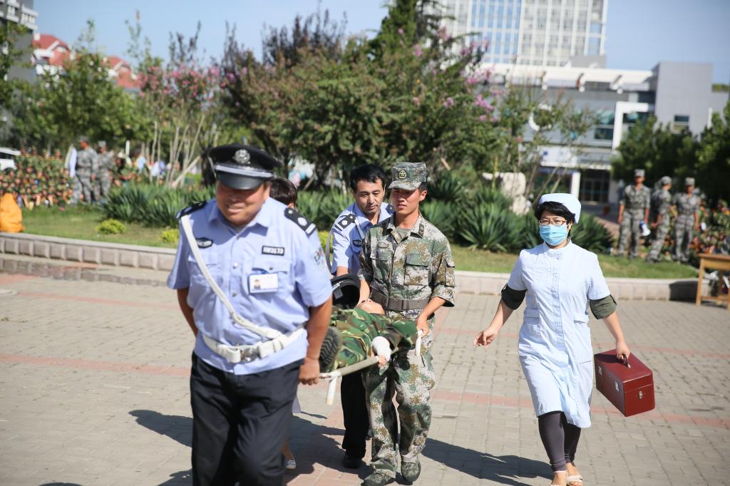 上午9时许,学生公寓B3楼突然“黄烟滚滚”。“火灾”发生后,指导老师组织灭火并迅速疏散同学,480余名男生手持毛巾捂鼻,从模拟现场安全逃离。“受伤”人员经过安全防护救护组的紧急急救,被转移到安全地区。