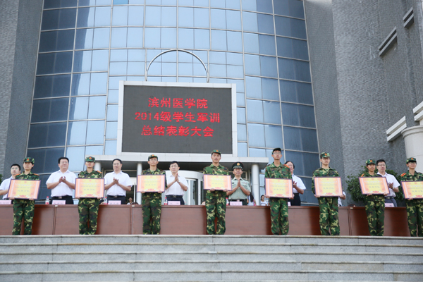 大会对9个军训团和8个阅兵优秀方队进行了表彰,2014级新生刘天匡代表全体受训新生作了发言。