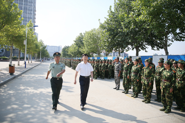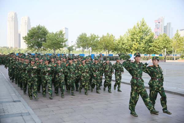 9月13日,学校2014级学生军训总结表彰大会在学校北广场隆重举行。院长王滨检阅了军训方队。校党委副书记李文喜、中国人民解放军某部队副政委戴中文中校分别作了讲话。副院长张培功宣读了《关于表彰2014年学生军训先进集体和阅兵优秀方队的决定》。中国人民解放军某部队胡鹏飞少校担任阅兵总指挥。学生工作处处长李兆松主持总结大会。学校有关部门、各院(系)负责同志出席大会并在主席台就座。军训团全体教官和参训学生参加了大会。