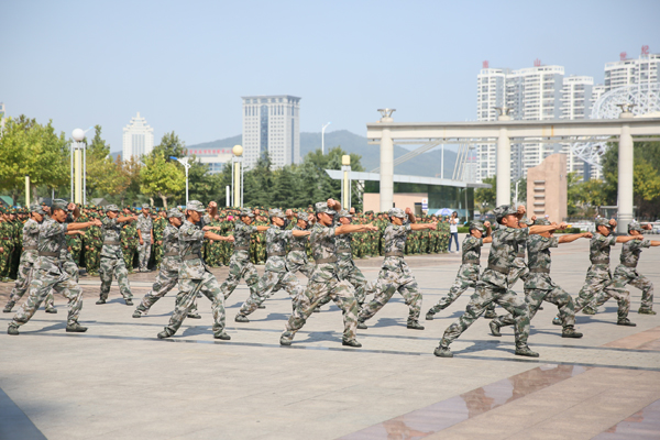 李文喜发表了热情洋溢的讲话。他代表学校向出席大会的烟台警备区领导表示热烈的欢迎,向为军训付出辛勤汗水的教官们表示衷心的感谢!向顺利完成各项军训任务的全体参训同学致以亲切的问候!向在本次军训中取得优异成绩的先进集体表示热烈的祝贺!向始终服务在军训第一线的工作人员道一声:你们辛苦了!