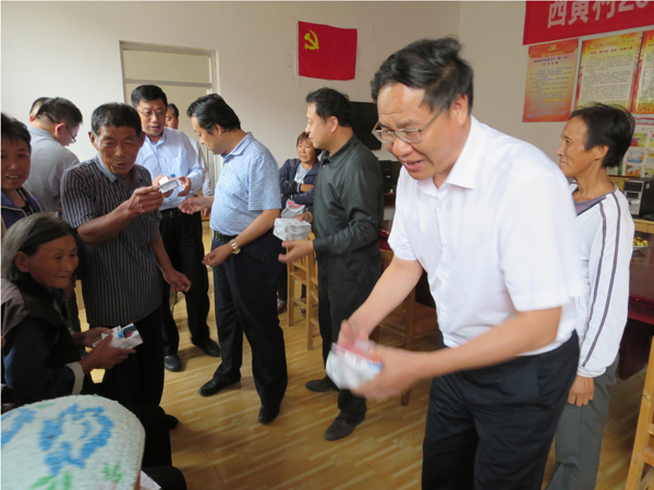 校党委副书记李文喜为帮包村的老人送去重阳节祝福