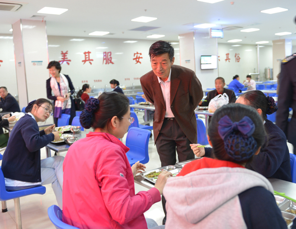 马爱武在详细听取了烟台附院主要负责同志关于医院后勤管理体制及运行情况的总体汇报后,实地查看了餐厅、厨房、主副食仓库、生产加工间、餐具消毒间等,了解医院膳食管理体制、饭菜质量、价格、卫生安全等情况,听取了职工对食堂卫生、服务质量、饭菜价格等方面的意见和建议,并对医院后勤管理服务工作提出要求。