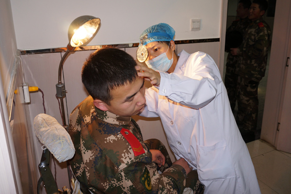 医疗队员为官兵查体