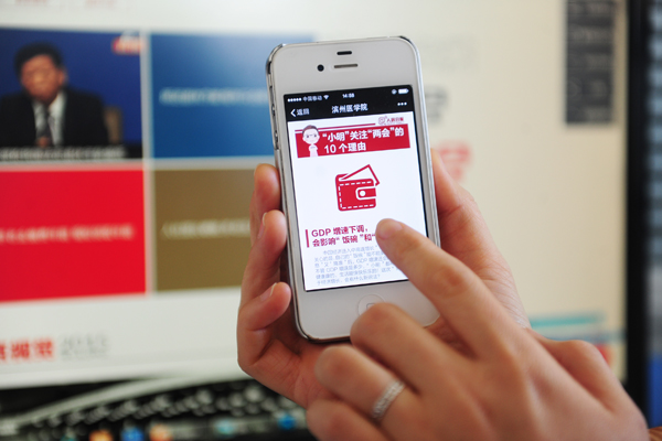 党委宣传部充分发挥新媒体的优势,运用滨州医学院官方微博、微信平台第一时间向广大师生推送关于“两会”的信息,几分钟时间就有一百多的点击量。网络信息科科长王玲玲说:“作为一名新闻宣传工作者,在及时向广大师生推送“两会”信息的同时,自身更应该加强对“两会”精神的学习,深刻领会“两会”精神,结合自身工作,学以致用,融汇贯通。”