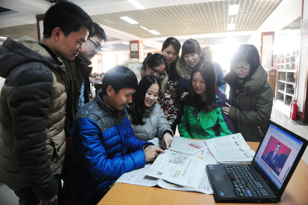 人文与社会科学学院学生会组织学生骨干到图书馆报刊阅览室,开辟“你我看两会”专题讨论角,查阅报纸、观看视频资料,认真学习“两会”精神,讨论两会热点问题。学院学生会主席张鸿鹏告诉记者,作为当代大学生应该密切关注社会热点,增强政治敏感性,无论将来考研还是应聘工作,“两会”知识都应该积极关注,这本身就是一个知识获取和积累的过程。