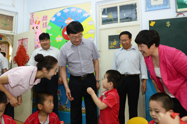 王滨实地查看了幼儿园的室内外活动场所,深入到各班级和孩子进行零距离地交谈,了解孩子们在园的生活状态与活动开展情况,并听取了幼儿园的工作汇报。