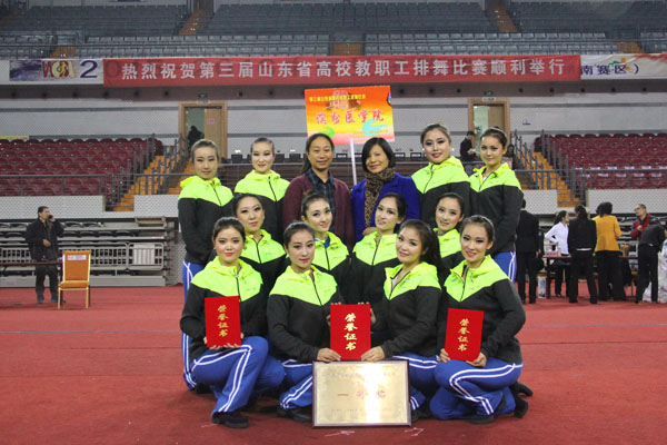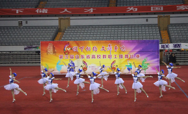 11月18日至19日,由省教育工会主办、山东大学承办的第三届山东省高校教职工排舞比赛在山东大学体育馆举行。我校代表队经过激烈角逐,荣获第三届山东省高校教职工排舞大赛甲组中青年组一等奖、优秀编导奖、优秀运动员奖、最佳服饰奖等多个奖项。校工会荣获优秀组织奖。