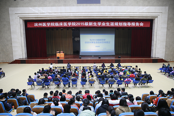 11月21日下午,副院长李克祥在大学生活动中心为临床医学院2015级新生作了题为“大学生活应该如何度过”专题指导报告。报告会由临床医学院党委书记冯卫红主持。