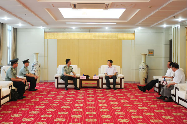 王滨首先代表学校对丛林松一行的到来表示欢迎,对烟台警备区某部队对学校2016级新生军训工作给予的支持表示诚挚感谢。双方就军训工作进行了深入交流和讨论,并一致表示,将紧密围绕军训工作,加强合作,确保2016级新生军训工作圆满完成。