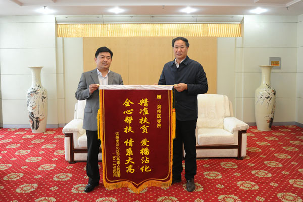 王明深情回顾了“第一书记”驻村以来,村庄在班子建设,道路、水利、电网生产设施、文体设施、增收致富、村容村貌、思想观念等方面发生的显著变化,他代表帮扶村庄的全体村民,向滨州医学院对帮扶村庄经济社会发展的大力支持、“第一书记”们的辛勤工作,表示衷心的感谢。