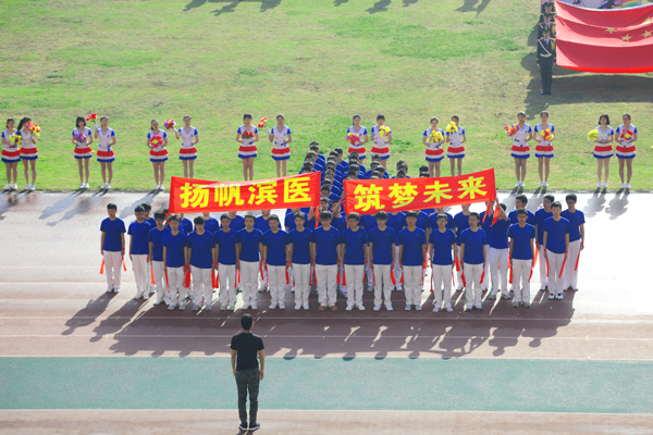 王滨在致辞中指出,长期以来,我校始终把提升学生健康素养和体质健康水平摆在重要位置,不断深化体育课程改革,完善体育运动设施,丰富体育文化生活,校园体育运动氛围浓厚,学校体育工作取得了新的成绩和突破,形成了珍视健康、热爱运动、积极向上的良好氛围。他强调,今年的运动会,既是落实学校体育工作的重要举措,也是学校全面实施“十三五”规划,深化综合改革,推进内涵建设的重要时期举行的一次盛会。他希望,全体运动员要发扬“更高、更快、更强”的奥林匹克精神,服从大会安排,尊重裁判,尊重对手,顽强拼搏,奋勇争先,赛出风格、赛出水平、赛出友谊,争取运动成绩和精神文明的双丰收;全体裁判员要本着“客观、公正、准确”的态度,严守规程,公正裁决,确保各项赛事顺利进行;全体工作人员要树立安全第一意识,忠于职守,热情服务,营造和谐的赛场氛围;全体观众要模范遵守赛场纪律,文明观赛,积极为运动员呐喊助威,共同维护赛场秩序、展现滨医风采。