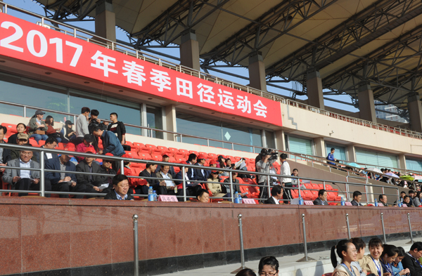 4月20日上午,滨州医学院2017年春季田径运动会在烟台市体育公园主体育场精彩开幕。在校校领导车先礼、王滨、张培功、白咸勇、李克祥、张宗伟、吕长俊出席开幕式并在主席台就座。校党委书记车先礼宣布运动会开幕,院长王滨致开幕词,副院长张培功主持开幕式。