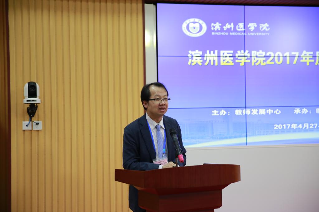 王署君教授在致辞中首先对滨州医学院的邀请表示感谢,他介绍了阳明大学的基本情况和办学精神,重点介绍了阳明大学开展医学整合课程与PBL教学的教育实践,并表示要加强同滨州医学院的交流与合作,促进双方共赢发展。