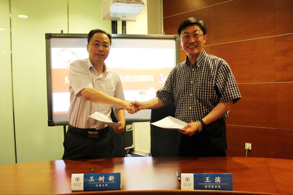 王滨与王树新分别代表滨州医学院与天津大学签署两校合作协议