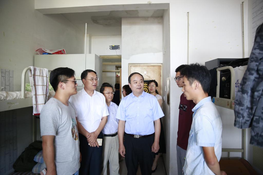 6月25日下午,校党委书记车先礼、校党委副书记李文喜在相关部门及学院负责人陪同下,深入毕业生宿舍进行走访,亲切看望2017届毕业生。