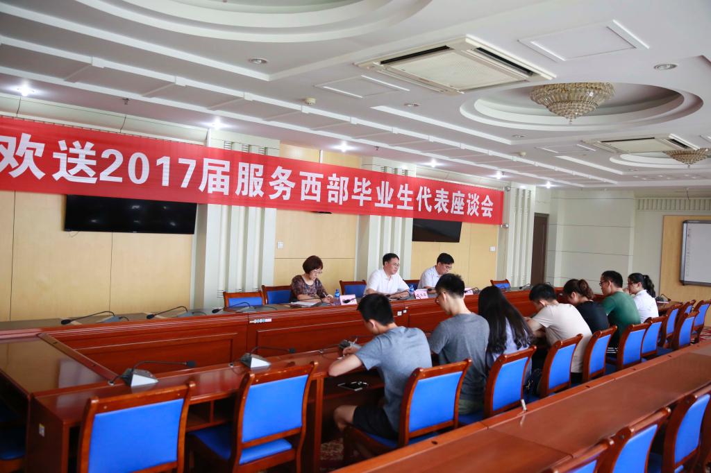 6月30日上午,欢送2017届服务西部毕业生代表座谈会在办公楼九楼会议室举行。党委副书记李文喜出席座谈会,学生工作处、校团委相关负责同志及7名服务西部毕业生代表参加会议。