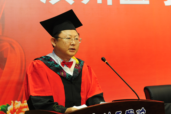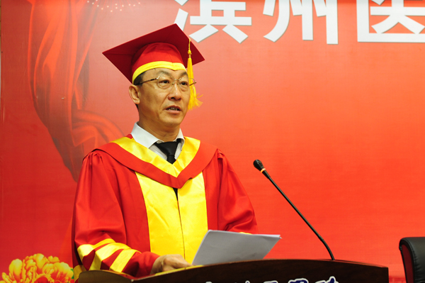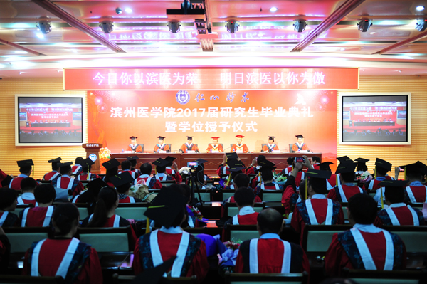 毕业典礼在中华人民共和国国歌声中开始。王滨在致辞中代表学校向圆满完成学业的全体硕士研究生表示热烈的祝贺,向全体导师以及为研究生培养工作做出贡献的教职员工,向关心和支持研究生学习的父母及家人表示衷心的感谢。他真情勉励即将毕业的研究生同学,一要胸怀梦想,锐意进取,在将来的工作和学习中牢记医生的天职,胸怀大梦想,施展大抱负,在筑梦的过程中,把握“中国梦”的精神内涵,为国家民族的医疗事业发展做出应有的贡献;二要坚定信念,永不言弃,精深学术、精湛技术、精妙创造,走好自己无悔人生的坚实步伐,成为滨州医学院的骄傲;三要抓住机遇,脚踏实地,积极争取,努力上进,体现生命意义,实现自我价值,最终成就人生的高峰。最后,王滨动情地说,未来会在你们胸怀梦想、坚定信念,脚踏实地、苦干实干中绽放出更璀璨夺目的光芒!当你们取得成就的时候,请不要忘记和母校分享你的喜悦!常回来看看,滨医是你们永远的家园和港湾!