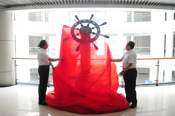 副院长张培功、白咸勇共同为校友捐赠纪念品揭幕