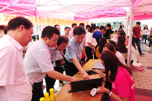 新生报到现场各部门、学院充分利用各种媒体渠道,如学校网站、校官方微信、本部门微信公众号、教务处网站、新生电话通知等,将新生入学报到的流程、注意事项以及注册、体检、图像采集、英语分级考试等信息广泛进行宣传。各学院还积极利用新媒体社交平台提前与新生取得联系,通过微信群、QQ群推送班级通知,拉近师生距离。