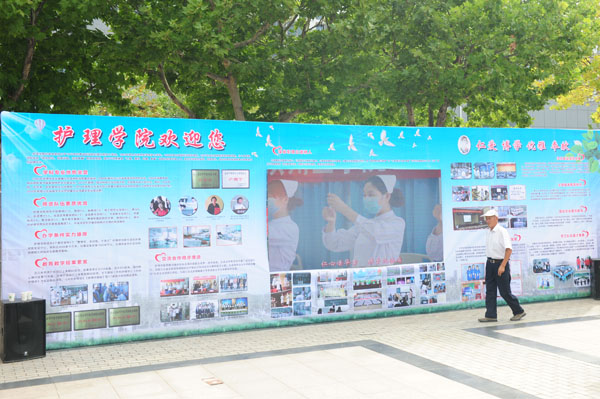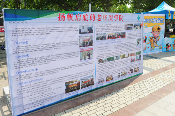 除了考研就业情况展出、视频影像播映、合影墙设置等新亮点,一些学院精心设计,从不同的角度着力,为2017级新生提供温馨周到的服务。公共卫生与管理学院在迎新现场设置了班级导师咨询处,解疑答惑,为新生更好的了解专业学习提供贴心服务;外国语与国际交流学院以展板的形式分别致2017级新生家长和新生书信,言辞情真意切,将迎新的工作安排和注意事项简洁呈现,一目了然,有助于新生家长与新生更快的适应大学开学的节奏;康复医学院巧妙地以康复医学知识宣传周活动为载体,用展板的形式将新生报到、专业了解等内容融合在一起,收到了良好效果;老年医学院则以靓丽的颜色、巨幕版型分为五个板块介绍了学院各方面工作的基本情况,让学生感受到了学院对新生的高度重视。