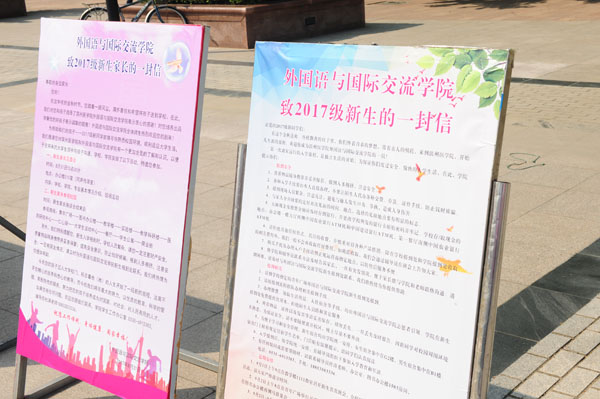 除了学校相关职能部门的热情接待外,各学院的迎新活动也在不断推陈出新,亮点纷呈。主要表现在平面展板、视频影像的综合运用。