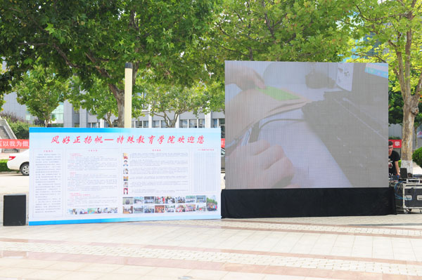 特殊教育学院与护理学院在展板上设置了电子屏,播放介绍学院基本情况的专题片,影视视频的生动形象特点让2017级新生对学院的发展有了更为直观的了解,音画结合的特点也让吸引了不同专业的同学纷纷驻足观看。