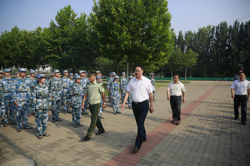 在军训现场,李文喜代表学校对承训官兵的辛勤付出表示衷心感谢。他详细了解了教官们的生活、饮食和学生军训工作开展情况,并要求有关工作人员一定为教官提供周到便利的服务。