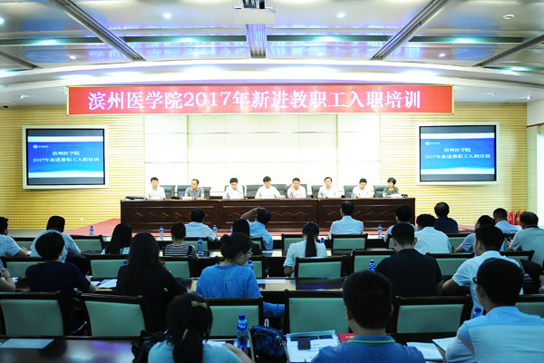 9月2日,学校在办公楼六楼报告厅举办2017年新进教职工入职培训班,对31名新进教职工进行集中培训。院长王滨出席培训班开班仪式并讲话。宣传部、人事处、教务处、科研处、研究生处、图书馆、医药研究中心以及各院(系)主要负责人参加了开班仪式。