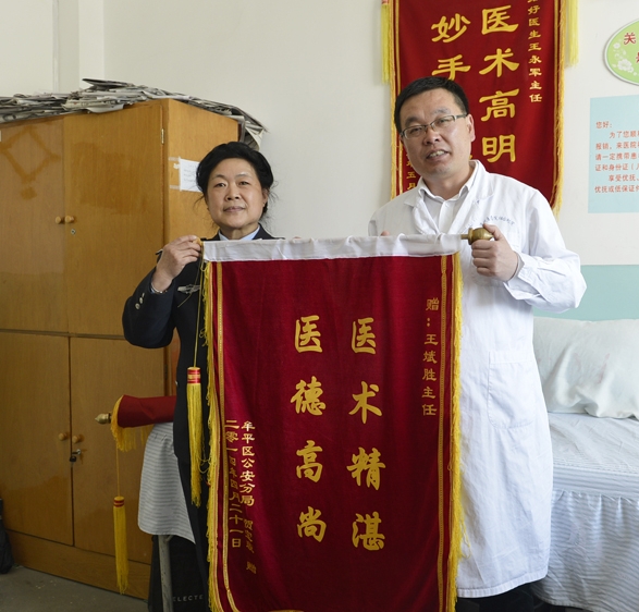 虽然工作较为繁忙,王斌胜仍然不忘大学的社会服务职能和“医教相长”的道理。在繁杂的教学工作和行政工作之余,仍然坚持临床工作。每周抽出1天时间,到烟台附院门诊。由于疗效确切,很快受到患者们肯定,求诊者应接不暇,为烟台附院中医学科的建设和社会影响力的提升,做出了一定的贡献。因为,门诊时间有限,很多患者想方设法到办公室求诊,在一定程度上占用了工作时间,甚至周末或者晚间休息时间,只要患者有所求,他也随叫随到。为了使本职工作不受影响,白天耽误的时间往往需要在业余时间弥补,经常出现熬夜到凌晨的情况,长期的忘我工作,使得身体健康也出现了较大的问题。家人对此很不理解,不理解他到底图的什么?他说:“我图的就是患者的信任和专业能力的提高”。
