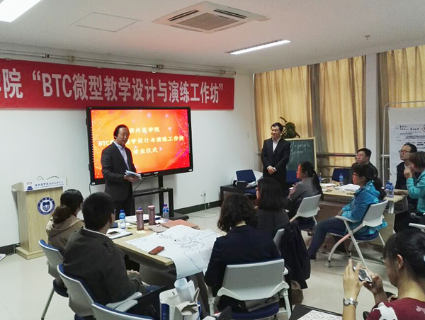 为加强我校教师队伍建设,进一步提升我校中青年教师教学技能和教育教学能力,提高教育教学质量,10月14-15日,教师发展中心邀请教育部高校网络培训专家张胜全团队来校开展“BTC微型教学设计与演练工作坊”活动。我校2017年新入职专任教师及部分中青年骨干教师代表共30余人参加活动。副院长张培功参加活动并讲话。