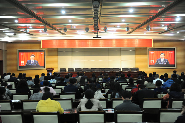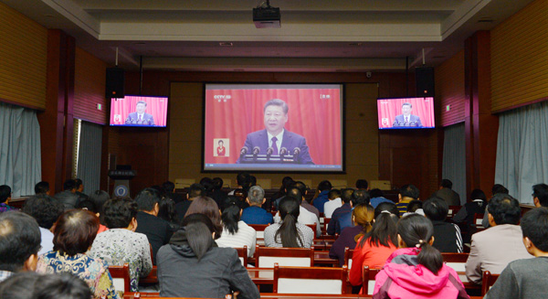 广大党员干部、师生代表收看党的十九大开幕盛况