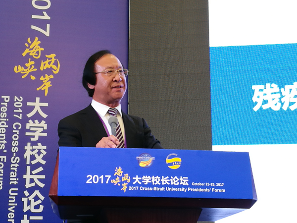 10月25日至27日,2017“海峡两岸大学校长论坛”在青岛举行。张培功副院长应邀参加论坛并作了“滨州医学院残疾人高等教育的创立与发展”的报告。合作发展规划处、特殊教育学院、康复医学院负责同志参加论坛。